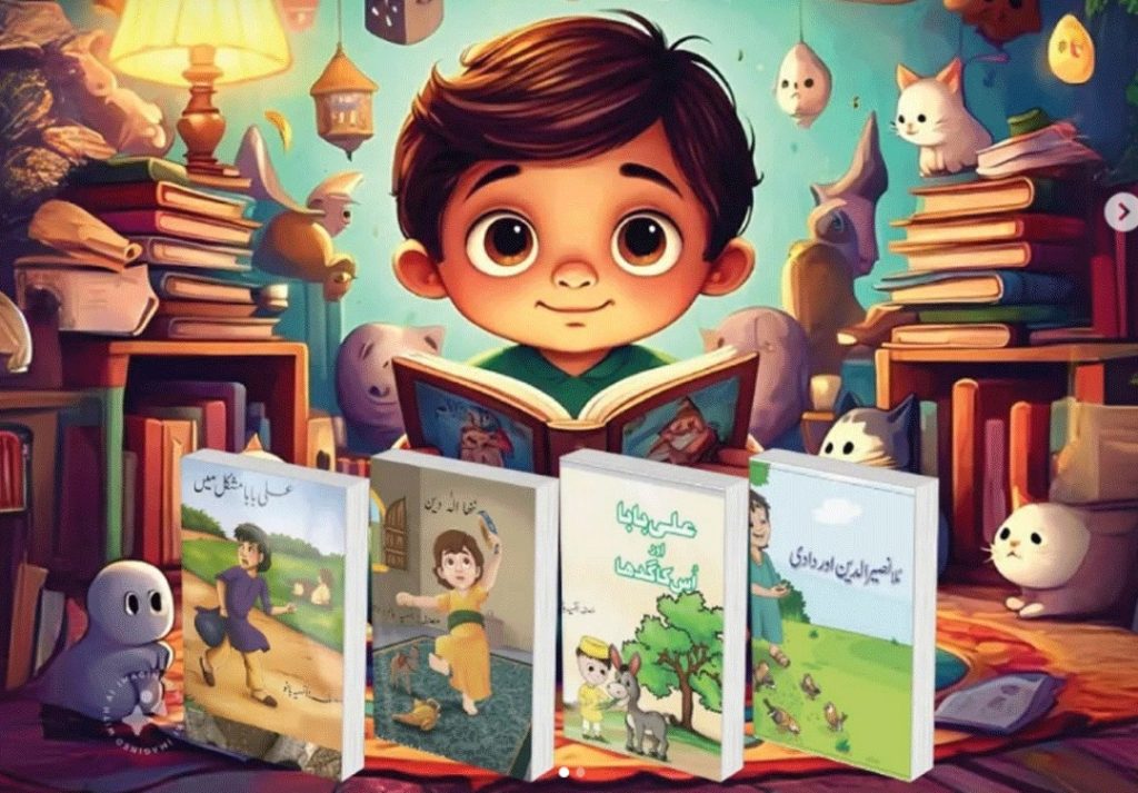 Children’s literature is her first priority, she is passing on our culture to the next generation through these books. To fulfill this objective, Burg o Bar Urdu is producing interesting colorful stories for toddlers. The characters in these stories are taken from well-known Alif Lailvi tales and some are real.